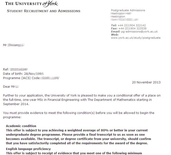 當前位置: 首頁 > 關于優越 > 錄取榜單 > 恭喜王同學被約克大學金融工程碩士專業錄取-優越教育
