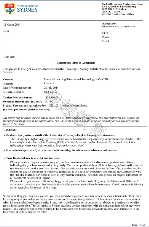 恭喜優(yōu)越教育成功幫助這位曹同學(xué)成功申請(qǐng)到悉尼大學(xué)研究生學(xué)習(xí)科學(xué)與技術(shù)專業(yè)專業(yè),歡迎隨時(shí)在線咨詢優(yōu)越教育,我們的客服24小時(shí)在線,感謝您的咨詢!