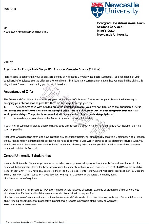 恭喜優越教育成功幫助這位趙同學成功申請到紐卡斯爾大學研究生高等計算機科學專業,歡迎隨時在線咨詢優越教育,我們的客服24小時在線,感謝您的咨詢!