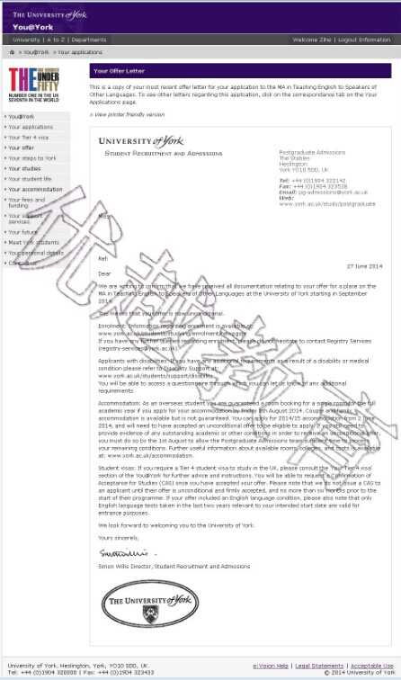 恭喜優(yōu)越教育成功幫助這位廖同學(xué)成功申請到約克大學(xué)研究生非英語母語教學(xué)專業(yè),歡迎隨時(shí)在線咨詢優(yōu)越教育,我們的客服24小時(shí)在線,感謝您的咨詢!