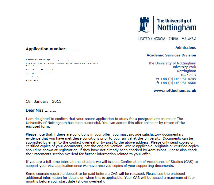 恭喜章同學獲得諾丁漢大學市場營銷學碩士錄取通知書。英國優越教育是一家專業的擁有國外資質的留學機構,是國內幾乎的唯一的一家英國當地注冊的正規留學機構,被英國外交部與駐倫敦中國大使館認證。2014年優越教育的留學申請成功率達到百分之100,我們的客服24小時在線,歡迎您隨時咨詢! 我們的熱線電話是 400-666-1553 (中國區),+44(0) 203 206 1211 (英國區)。