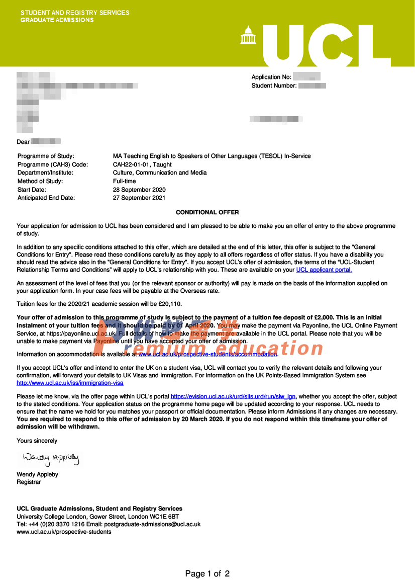 2020offer:恭喜陳同學(xué)獲得倫敦大學(xué)學(xué)院對(duì)外英語教學(xué)專業(yè)碩士通知書