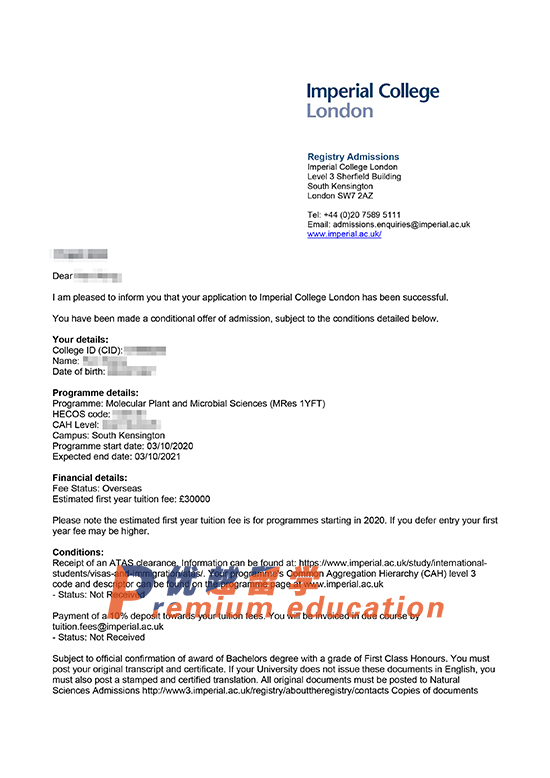 2020offer:恭喜王同學(xué)獲得帝國理工大學(xué)分子植物和微生物科學(xué)專業(yè)碩士通知書