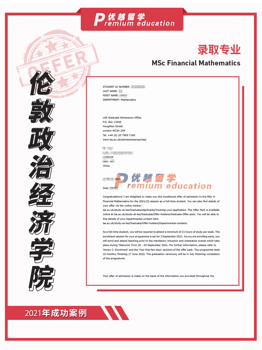 2021offer:恭喜錢同學獲得倫敦政治經濟學院金融數學專業碩士通知書