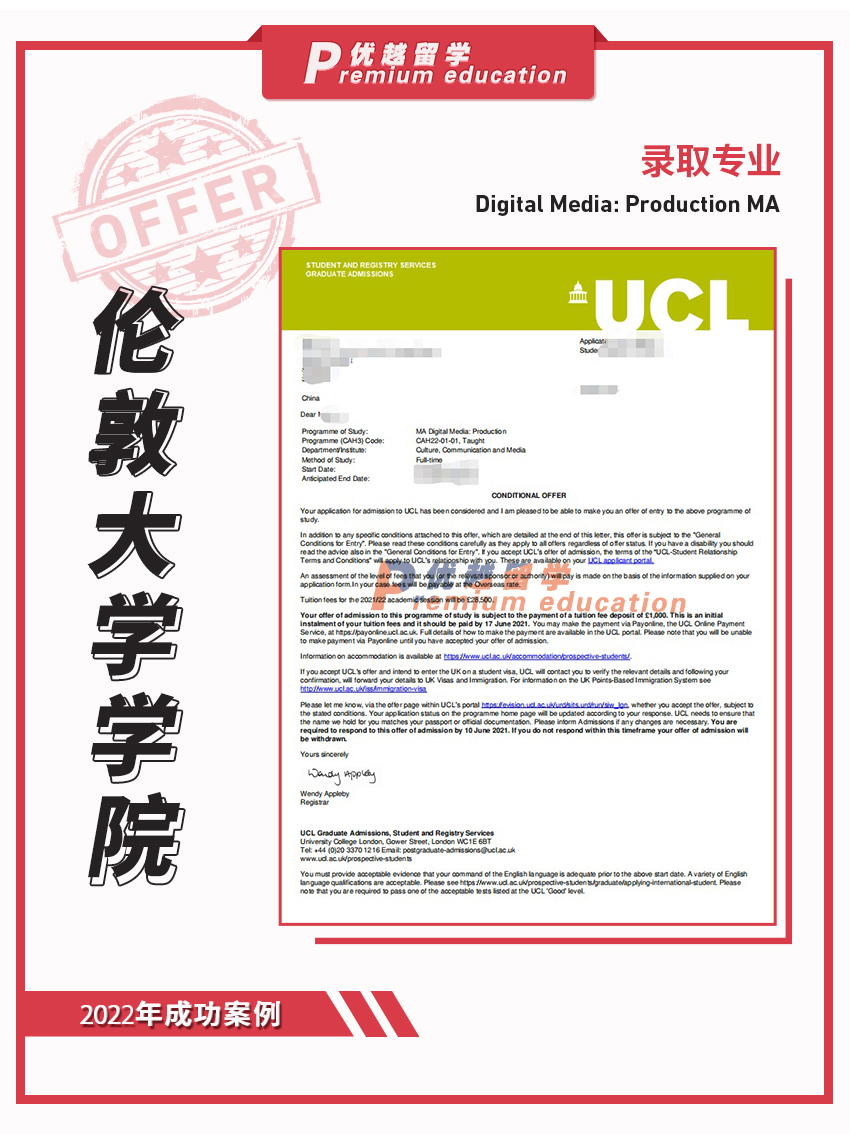 2022offer(英國碩士): 倫敦大學學院數(shù)字媒體專業(yè)