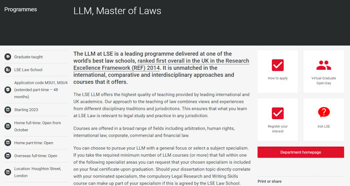 LSE的LLM 課程向擁有法學(xué)本科學(xué)位的申請(qǐng)人開放,通常只提供給在法律學(xué)習(xí)中取得非常好的成績(jī)。例如,英國(guó)法學(xué)學(xué)士學(xué)位的第一名或非常高的第二名。
