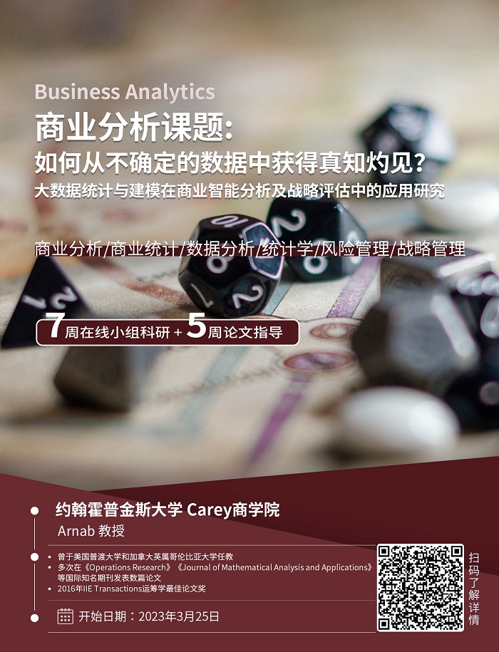 1.該項目適合商業分析、數據科學、風險管理、統計學,應用數學等專業或者希望修讀相關專業的學生。具有代數及微積分基礎的同學優先;