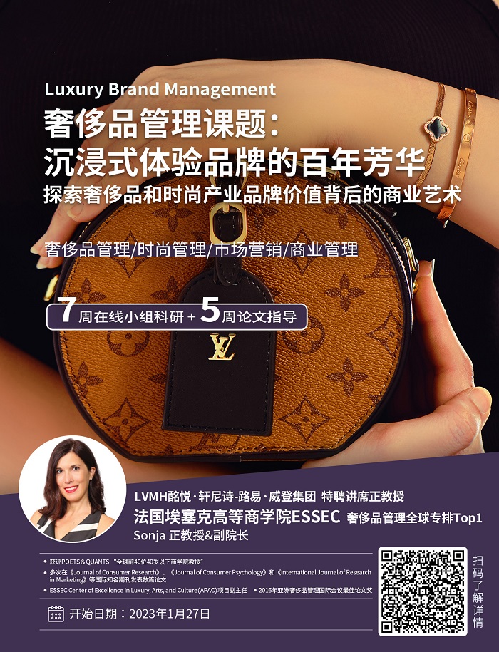 2.本課程將讓學生深入了解奢侈品牌管理的基本原理、傳統奢侈品牌的最佳實踐和成功因素,以及適用于任何高端品牌的應用研究。