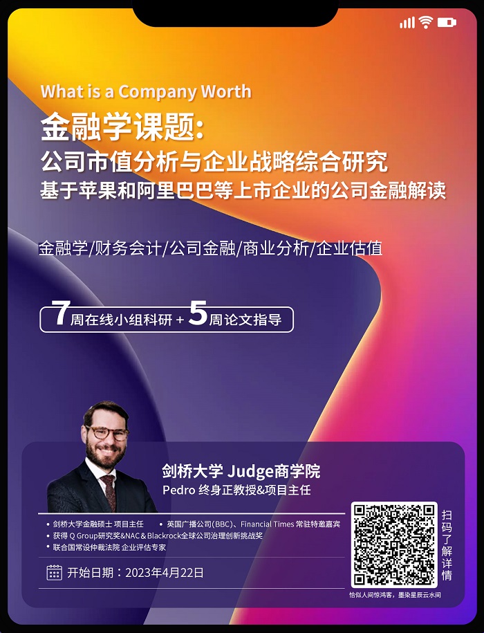 2.本項(xiàng)目導(dǎo)師目前任教于英國(guó)劍橋大學(xué)Judge商學(xué)院,同時(shí)也是劍橋大學(xué)金融碩士的項(xiàng)目主任。他曾為劍橋大學(xué)等多所知名大學(xué)的MBA,EMBA,MPhil等專業(yè)教授課程。