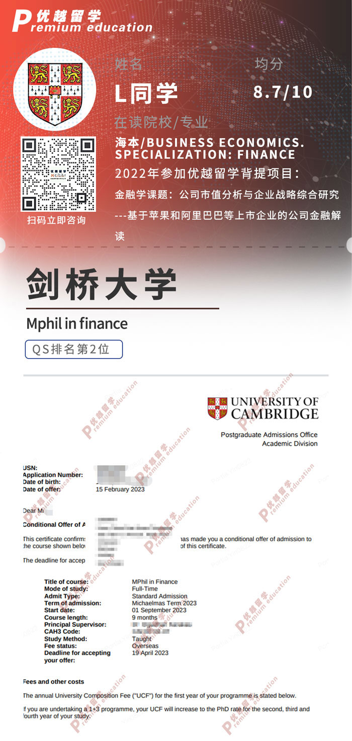 2023offer:恭喜L同學(xué)在碩士留學(xué)申請(qǐng)中獲得劍橋大學(xué)金融碩士通知書(shū)!