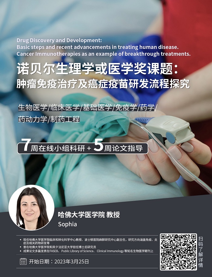 3.導(dǎo)師在項(xiàng)目中介紹免疫療法的具體實(shí)施步驟并分析其潛在的副作用。在講解目前現(xiàn)有療法后,導(dǎo)師將帶領(lǐng)學(xué)生一同研究最新的療法中并了解這些療法是臨床試驗(yàn)中的測(cè)試過程。