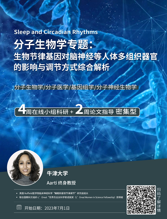 3.學生將在項目結束時,提交項目研究報告,進行成果展示。個性化研究課題參考:晝夜節律產生的分子機制、多巴胺的晝夜節律調節、晝夜節律系統在藥物代謝和解毒中的作用、癌癥治療中的生物鐘分子機制。