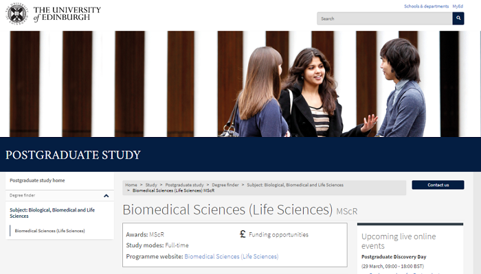 申請要求來自部分國內優質大學的申請者具有生物、化學或物理科學二等一以上榮譽學位,且總成績達到80%-85%。
