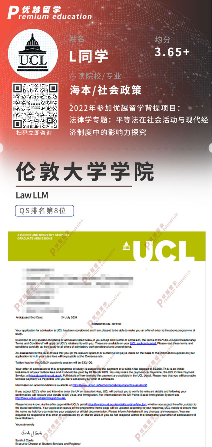 2023offer來襲!恭喜L同學(xué)在碩士留學(xué)申請中斬獲倫敦大學(xué)學(xué)LLM碩士通知書!