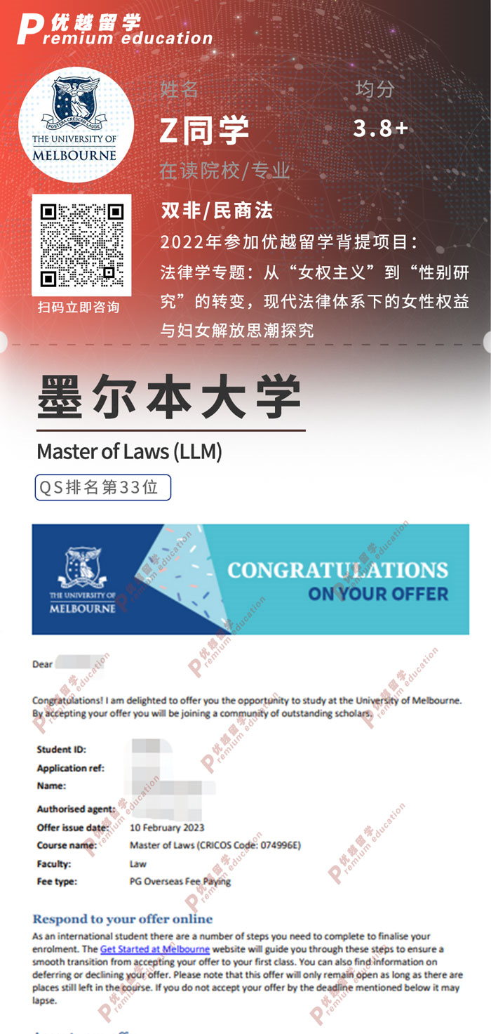 當前位置: 首頁 > 關于優越 > 錄取榜單 > 2023offer(澳洲碩士): 【墨爾本大學】法學專業