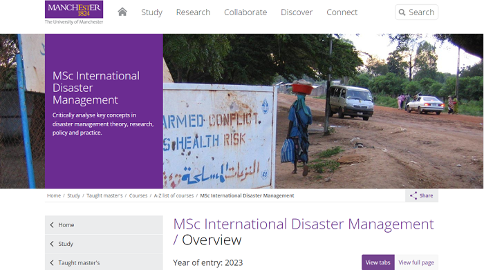 此項目培養技能和知識,批判性地分析和應用災害管理理論、研究、政策和應用中的關鍵概念,例如脆弱性、復原力、治理、減少災害風險和可持續發展。