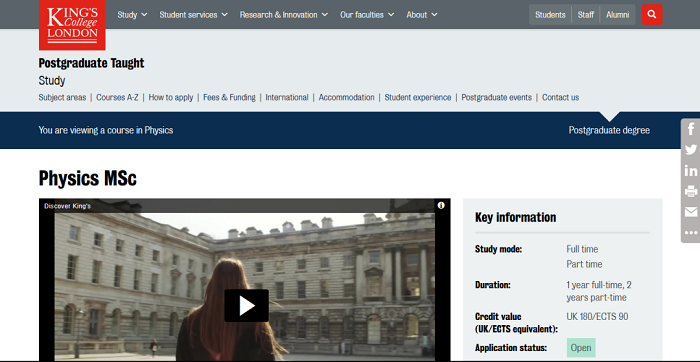 2023offer(英國碩士): 【倫敦國王學(xué)院】物理學(xué)專業(yè)