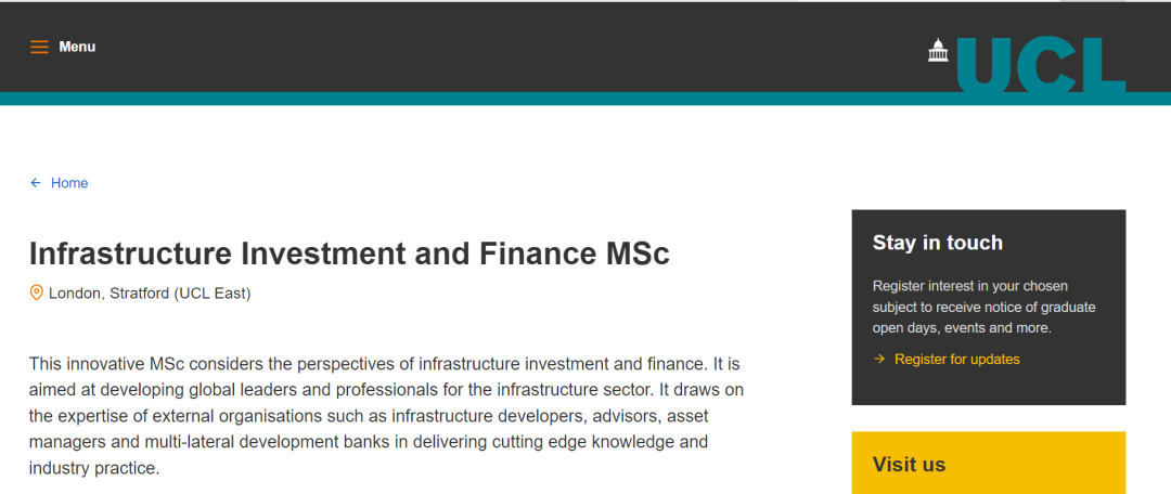 錄取專業:Infrastructure Investment and Finance MSc
