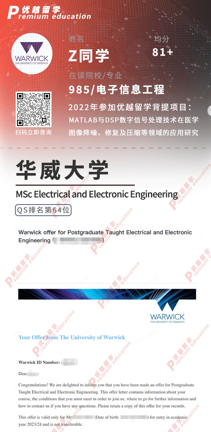 2023offer來襲!恭喜Z同學在碩士留學申請中斬獲華威大學電氣與電子工程碩士通知書!