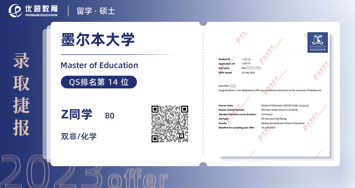 2023offer來襲!恭喜Z同學在碩士留學申請中斬獲墨爾本大學教育碩士通知書!