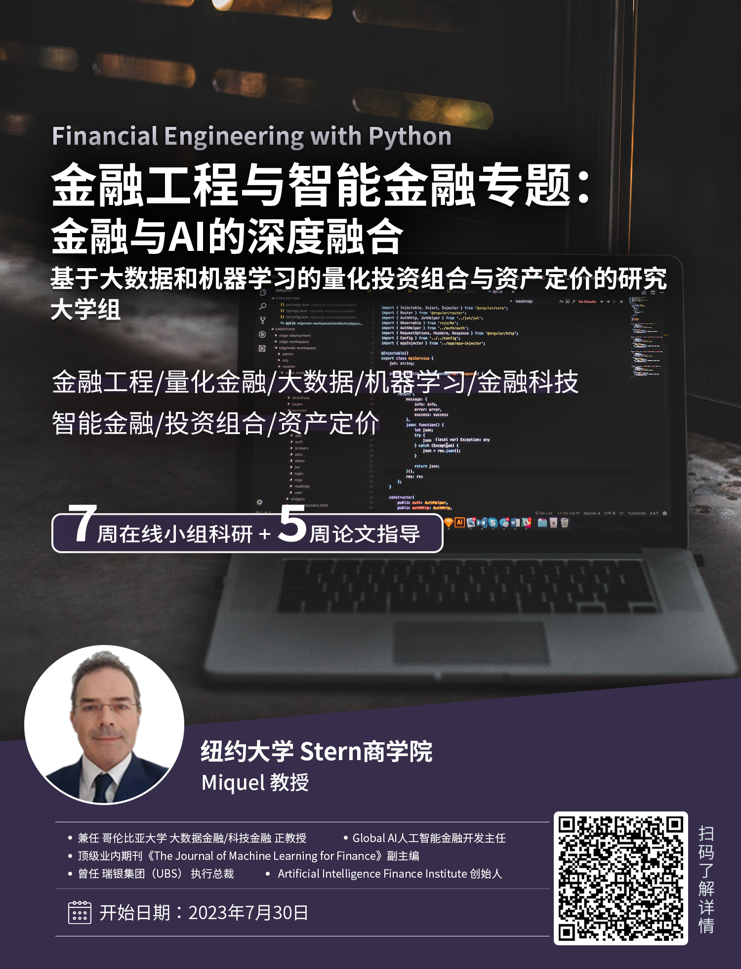 1、本項目適合金融工程、量化金融、金融數學、科技金融、投資學、統計和計算機相關專業,以及對金融工程、量化分析、AI、機器學習、量化投資和大數據金融工作感興趣的同學;學生需要具備扎實的數學基礎和編程基礎;