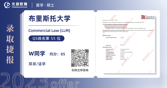 2023offer來襲!恭喜W同學在碩士留學申請中斬獲布里斯托大學商業(yè)法碩士通知書!