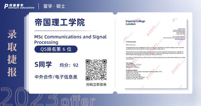 2023offer來(lái)襲!恭喜S同學(xué)在碩士留學(xué)申請(qǐng)中斬獲帝國(guó)理工學(xué)院通信與信號(hào)處理碩士通知書!