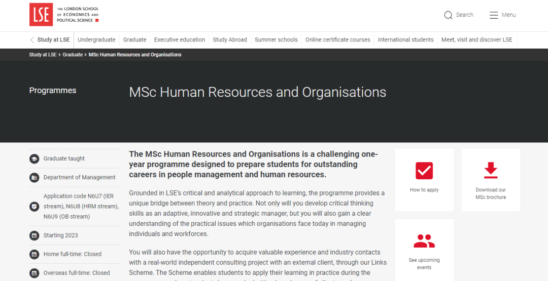 人力資源與組織理學碩士課程為期一年,極具挑戰性,旨在培養學生在人員管理和人力資源領域的杰出職業生涯。該課程以倫敦政治經濟學院的批判性和分析性學習方法為基礎,在理論與實踐之間架起了一座獨特的橋梁。學生不僅可以培養批判性思維能力,成為一名適應性強、富有創新精神的戰略管理者,還可以清楚地了解當今組織在管理個人和員工隊伍時面臨的實際問題。