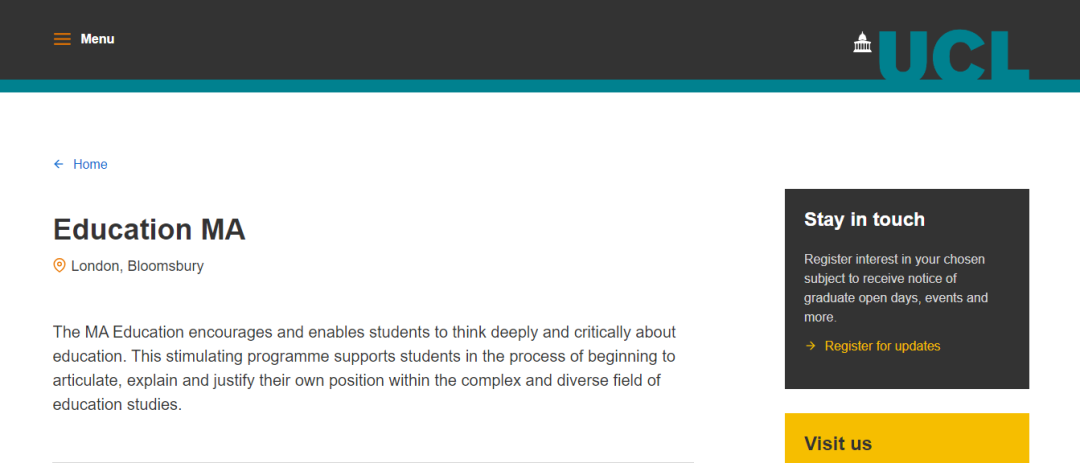 教育碩士課程以倫敦大學學院教育與社會學院 IOE 為基礎,借鑒了這個世界領先的教育研究中心的專業知識。碩士教育團隊堅定地致力于該項目的目標,并熱衷于培養學生的理解力。課程發展廣泛的學術和可轉移的專業技能,這對學生的職業生涯大有裨益,畢業生也有能力以令人興奮的方式進一步發展各自的職業生涯。