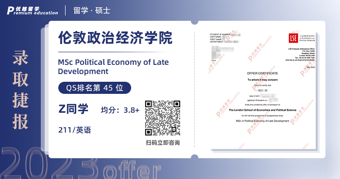 2023offer來襲!恭喜Z同學在碩士留學申請中斬獲倫敦政治經濟學院LSE后期發展政治經濟學碩士通知書!