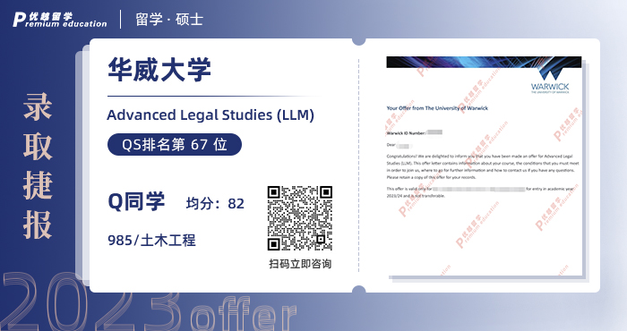 以上是【本期offer榜單:2023offer(英國碩士): 【華威大學】高級法律研究法學LLM】相關的全部內容,查看更多【offer榜單】、【名校案例】相關資訊可前往【優越留學】首頁!世界名校申請,找優越留學!選校定校、申請規劃、文書寫作、背景提升、方案定制一套搞定!點擊【在線咨詢】,優越留學顧問24h在線為您一對一解答!