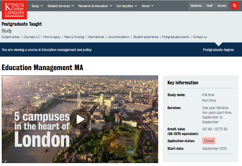 2023offer來襲!恭喜Z同學在碩士留學申請中斬獲倫敦國王學院KCL教育管理碩士通知書!