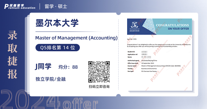 2024offer來襲!恭喜J同學在碩士留學申請中斬獲墨爾本大學管理學(會計)碩士通知書!