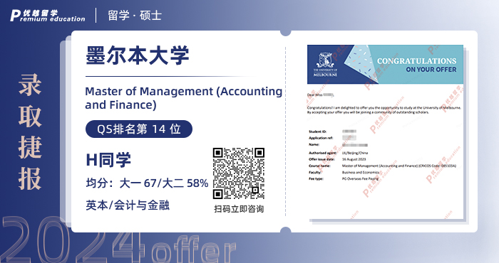 2024offer來襲!恭喜J同學在碩士留學申請中斬獲墨爾本大學管理碩士(會計與金融)通知書!