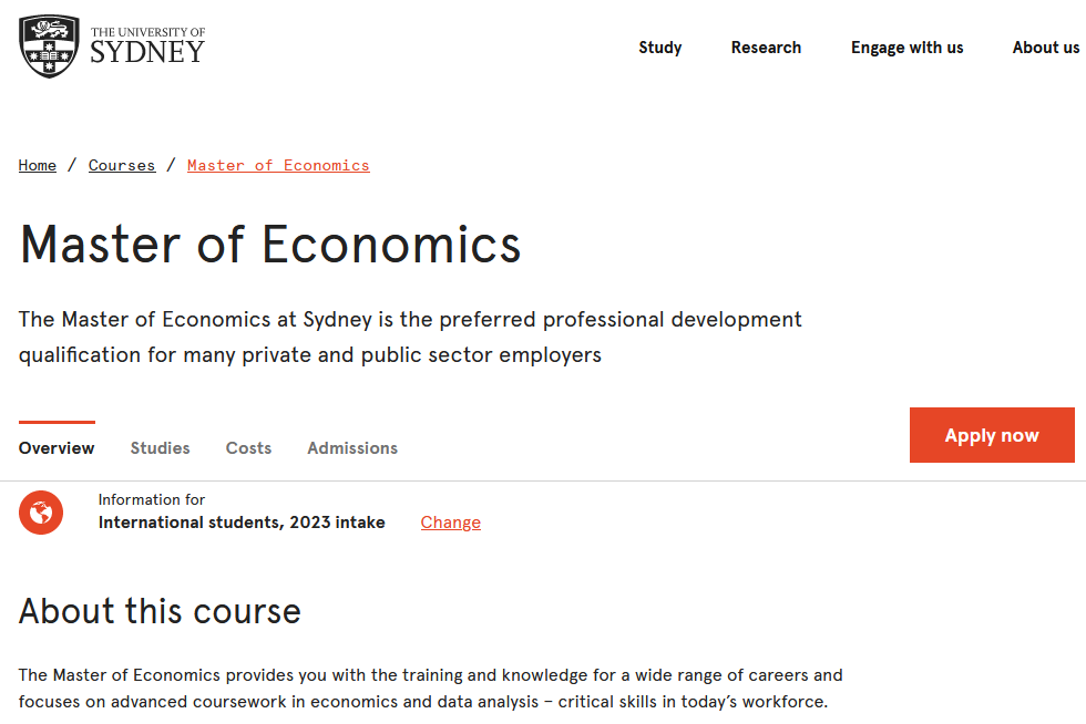 2024offer(澳洲碩士): 【悉尼大學】經濟學碩士