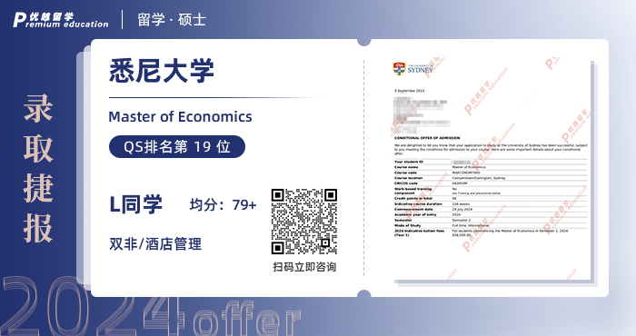 2024offer來襲!恭喜L同學在碩士留學申請中斬獲悉尼大學經濟學碩士通知書!