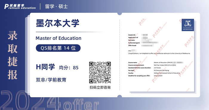 2024offer來襲!恭喜H同學在碩士留學申請中斬獲墨爾本大學教育碩士錄取通知!