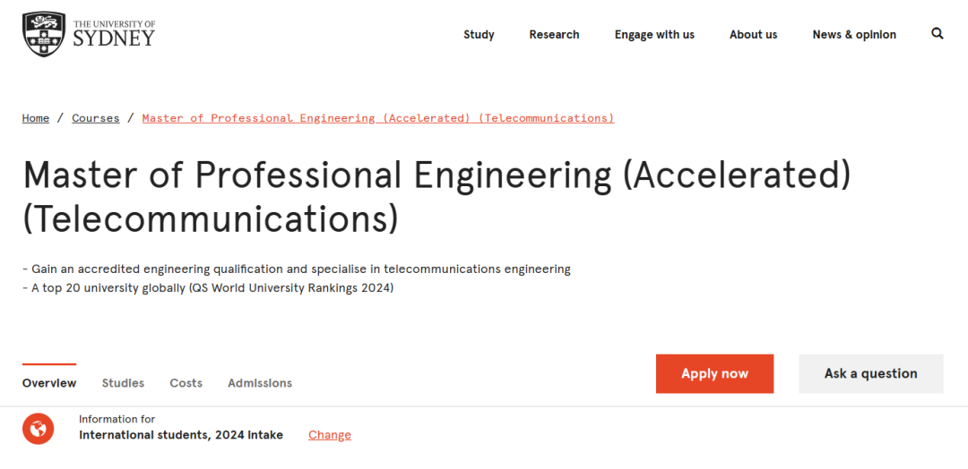 2024offer來襲!恭喜W同學在碩士留學申請中斬獲悉尼大學專業工程學碩士(加速)(電信)錄取通知!