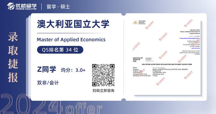 2024offer來襲!恭喜Z同學(xué)在碩士留學(xué)申請(qǐng)中斬獲澳大利亞國(guó)立大學(xué)應(yīng)用經(jīng)濟(jì)學(xué)碩士錄取!