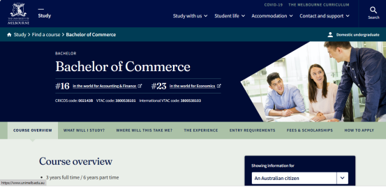 墨爾本的的商學(xué)學(xué)士學(xué)位為學(xué)生提供會(huì)計(jì)學(xué)、精算研究、經(jīng)濟(jì)學(xué)、金融、管理、營銷專業(yè)的選擇。