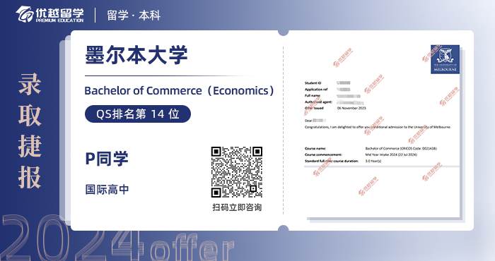 2024offer來襲!恭喜P同學(xué)在本科留學(xué)申請(qǐng)中斬獲墨爾本大學(xué)商學(xué)學(xué)士錄取!