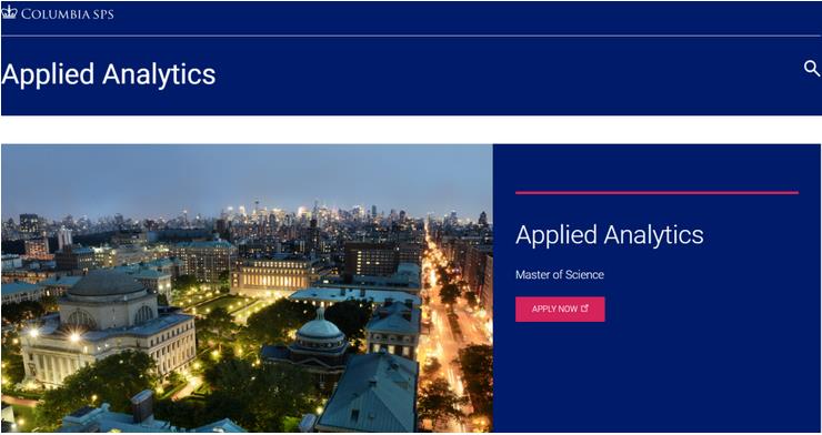美國藤校哥倫比亞大學(以下簡稱哥大)這個應用分析學碩士(MSAA)這兩年申的非常火爆,1年學制,屬于STEM項目,開設于哥大SPS學院,偏商業分析、數據分析,本身技術性很強,允許國際生自由選擇part-time(6個學期)和full-time(3個學期)。