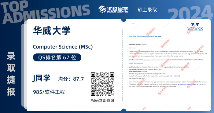 2024名校offer來襲!恭喜L同學在碩士留學申請中斬獲華威大學計算機科學碩士錄取!