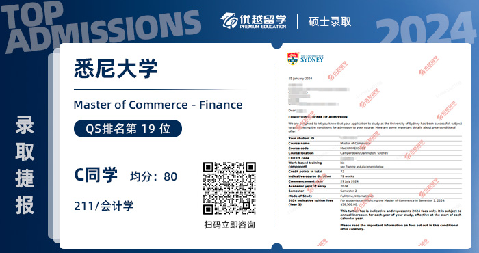 2024offer來襲!恭喜C同學在碩士留學申請中斬獲悉尼大學金融學碩士通知書!