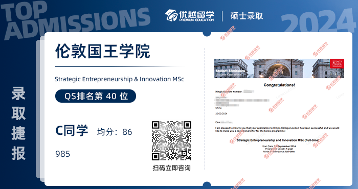 以上是【【倫敦國王學院】offer來了,是誰想做“王的人”?It's me! 】相關的全部內容,查看更多【offer榜單】、【名校案例】相關資訊可前往【優越留學】首頁!世界名校申請,找優越留學!選校定校、申請規劃、文書寫作、背景提升、方案定制一套搞定!點擊【在線咨詢】,優越留學顧問24h在線為您一對一解答!