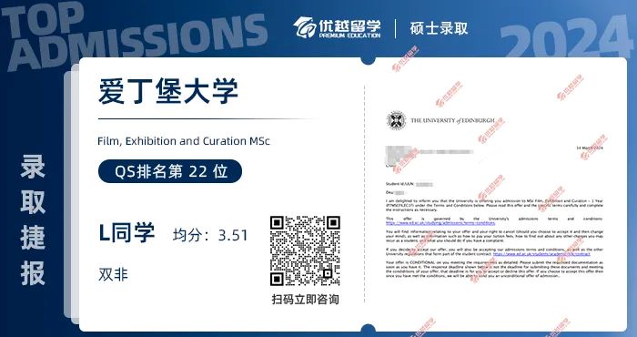 以上是【【愛丁堡大學】持續營業中,看看都是哪些同學拿到了offer!】相關的全部內容,查看更多【offer榜單】、【名校案例】相關資訊可前往【優越留學】首頁!世界名校申請,找優越留學!選校定校、申請規劃、文書寫作、背景提升、方案定制一套搞定!點擊【在線咨詢】,優越留學顧問24h在線為您一對一解答!