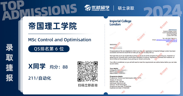 以上是【【帝國理工學院】211學長均分90+,穩拿IC控制與優化碩士offer!】相關的全部內容,查看更多【offer榜單】、【名校案例】相關資訊可前往【優越留學】首頁!世界名校申請,找優越留學!選校定校、申請規劃、文書寫作、背景提升、方案定制一套搞定!點擊【在線咨詢】,優越留學顧問24h在線為您一對一解答!