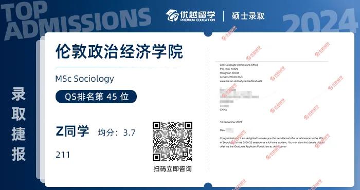 本周,有兩位優秀的優越學員如愿以償,成功斬獲了被譽為社會學子天花板的LSE(倫敦政治經濟學院)的錄取offer,這無疑為英國研究生留學申請增添了一抹亮麗的色彩。讓我們一同分享他們的經驗,并期待他們未來的精彩表現!