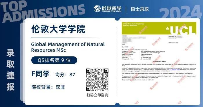 F學姐是去年3月來到優越的,用時半年的時間,上岸UCL全球自然資源管理碩士項目。接下來,就跟優越君一起看看,F學姐是如何從雙非小白,進階為英國留學讀研G5精英的吧~