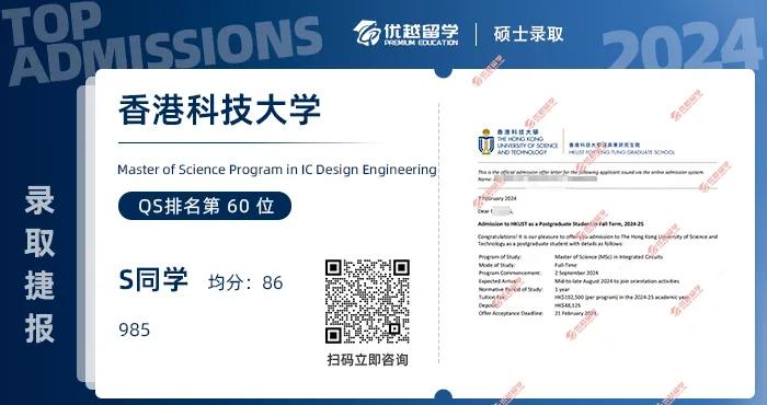 以上是【【香港科技大學(xué)】985信息工程專(zhuān)業(yè),輕松上岸港科技集成電路設(shè)計(jì)碩士】相關(guān)的全部?jī)?nèi)容,查看更多【offer榜單】、【名校案例】相關(guān)資訊可前往【優(yōu)越留學(xué)】首頁(yè)!世界名校申請(qǐng),找優(yōu)越留學(xué)!選校定校、申請(qǐng)規(guī)劃、文書(shū)寫(xiě)作、背景提升、方案定制一套搞定!點(diǎn)擊【在線咨詢(xún)】,優(yōu)越留學(xué)顧問(wèn)24h在線為您一對(duì)一解答!